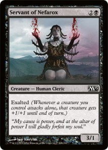 I totally skimmed over this card because it was a reprint and nothing new, but with Exalted? Unblockable, hitting every turn, and if you can keep the Exalted cards coming out, you could have an opponent begging for mercy really quick. Definitely good in a sealed tourney.