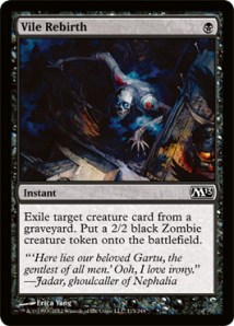 Holy crap this is powerful. It costs 1, it exiles a troublesome CREATURE card from ANY graveyard, and also puts a 2/2 Zombie into play for you! Getting something into the graveyard early might be a problem, but there are some cards that can help you do this (Murder, Mind Rot, etc)