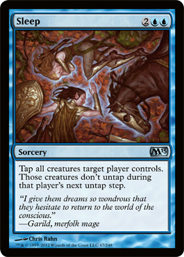 With his ability along I’d play him for 2 mana, but he’s ALSO a 1/3??!?! Damn. I really like this guy. I definitely believe that the two big strategies for blue in M13 will be focused on disrupting your opponents by tapping their creatures, and also milling them into oblivion. This guy fits into just about any deck you could make. UB, UW, UG, UR . . . he’s gonna be a pimp, especially combo-ed up with an Index.