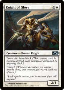 I think this card will see some play in WB Exalted decks alongside Knight of Infamy (or WG Exalted), and maybe in some Venser/Stonehorn Dignitary decks too. Exalted would work well with a 1/4 Rhino.