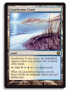 Today’s post is going to focus on Lands and Multicolor cards. Overall, the Scars of Mirrodin block wasn’t a multicolor heavy set, so the metagame won’t be losing much. We will be losing some very useful lands, but I’m sure there will be plenty of pain lands, as well as other artifacts in RTR that will take their place. What’s going to decide which decks thrive in the next 3 months is going to depend on which lands are released in each set. If they are following the first 5 Guilds of Return to Ravnica, then we’ll see a WG (Selesnya), BG (Golgari), UR (Izzet), UW (Azorius), and BR (Rakdos) pain lands.