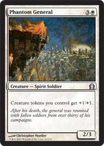 Did tokens REALLY need another anthem effect? They already have Intangible Virtue, fliers have Favorable Wind, and spirits have Drogskol Captain . . . geez. It’s pretty obvious that he’d fit in the best in a GW Selesnya deck. If you’re going to build around one or two of these cards, make sure you have lots of token producers and populate effects, because if you don’t he’s probably left better in the sideboard for something else. He’d be okay as a late pick, but I wouldn’t take him early unless you’re planning a token deck.