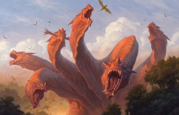 I’ve been wanting to exploit Kalonian Hydra ever since the card came out. It seems incredibly strong as long as it can stay on the battlefield. The problem is that it was always the biggest threat on the table and it always received the best removal card from your opponent the turn you played it. Looking at this deck list, you’re probably wondering why I chose to go mono green. GR gives you burn and cards like Ghor-Clan Rampager to push damage through, GW gives you powerful cards like Loxodon Smiter and Voice of Resurgence, and GB lets you kill at will with cards like Abrupt Decay and Putrefy. So why go green?