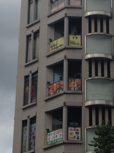Tenjin Station is located along Meiji Dori, and there is also a shopping area that runs underground, perpendicular to the station (the decor is really something. It felt like an old church sometimes). You want to take the underground shopping area towards Showa Dori. You’ll eventually have to go up to street level. From there, you’ll have Showa Dori going left and right, however you’ll want to continue going straight on route 602. Stay on the left side of the street and after 3 blocks (or 3 large streets), turn left. If you end up on Nanotsu Dori, you went one street too far. Walk down this street and turn right the first chance you get. If I’m correct, you should see a parking garage like the one in the picture above. You have to go up to the 3rd floor to find Fireball. There should be an entrance next to the garage office.