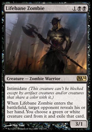 I think Lifebane Zombie has a future after rotation. It should hold it’s value at about $2-3 with the casual market alone, but it might see some play in fringe modern decks as well. I also wouldn’t be surprised to see it in EDH in the future. It has a strong ETB affect and intimidate. It puts a body on the ground and gives you information about your opponent’s hand. I’m sure there are some zombie players out there who will be in the market for these in the future. I’d wait a few weeks and see if their price dips a little bit more, then pick up a play set at rock bottom prices. I think all he can do it go up in the future. I also don’t think he’ll be printed again right away either. He’ll be back for sure, but not soon. If you can get a foil for $5-7 that might not be a bad investment either.