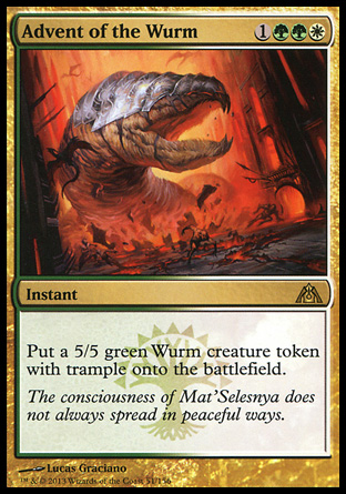 After Restoration Angel rotated, Advent of the Wurm took up the mantle of scary 4 drop. Whenever a GW player left 4 mana open, you KNEW there was something up their sleeve. It saw a lot of play at the end of the Innistrad block, but after that it had a hard time finding a place in standard. Some GW decks used it, and some skipped it altogether to keep their mana curves low. It’s not a card that I can see having any type of impact on eternal formats, but I think foils might find their way into some EDH decks in the future. A foil can be bought for around $3-4 online now, so if you feel like investing in one, be my guest. This is more of a gamble though. I DO think we could see this return in a future set sooner than the other Ravnica cards though. The name and ability can easily find their way into another set in a few years.