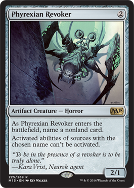During the Return to Ravnica and Theros metagame, I found myself using Pithing Needle more and more in the sideboard. There are lots of reasons to use Phyrexian Revoker now: Nissa, Worldwaker, Elspeth, Sun’s Champion, Sarkhan, the Dragonspeaker, etc. Cheap removal also is at an all time low, and if they do have it I don’t think this card will be a prime target for whatever they have. I think Phyrexian Revoker will be a good sideboard card in the upcoming standard metagame and would pick a few up at $1.50 if you don’t have them yet.