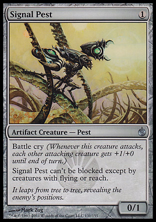 Signal Pest would fit in nicely with Modern Masters 2. It works in Affinity, Infect, and tokens for starters. It’s another staple of Affinity decks in modern, and it wouldn’t hurt to print some more, especially if the lower price of Mox Opals allows more people to play affinity in modern. I think there will be renewed interest as the cost of deck drops, as it’s a somewhat inexpensive but powerful tier 1 choice. There’s a good chance we’ll see it in May.
