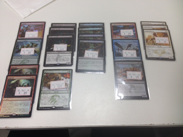 I ended up buying the Crux of Fate for 290 yen, the Mardu Woe-Reapers for 59, the Brutal Hordechief for 1089 and 1200 yen, and the Mardu Strike Leaders for 250 yen. Crux of Fate has already shot up to 500-600 yen in Nagoya, and the Hordechiefs are going for 1500+. I’ve also picked up Pre-release foils of Torrent Elemental for 800 yen, Warden of the First Tree for 680 yen, and a few other uncommons such as Temur Sabertooth and Humble Defector for 10-20 yen each.