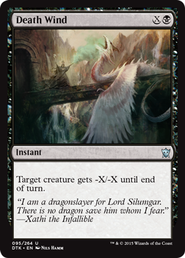 If Dragons is like Fate then you will need to be able to answer bombs, Death Wind is splashable and capable of being a combat trick when you get stuck on mana (worst case). I think Death Wind will definitely be a high pick.