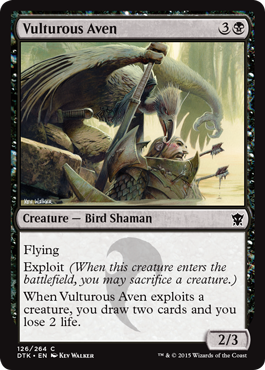 I REALLY like this card. For 4 mana I can get a Sign in Blood and a 2/3 flyer? Don’t mind if I do! This really enriches the limited format and makes playing black that much better. While this creature might not be winning any battles against dragons, it adds to the synergy in UB Exploit decks and makes playing a card like Palace Familiar that much better. It’s a must have in UB flyers, and probably worth playing in decks with a lower curve that need some gas later in the game to keep the pressure on.