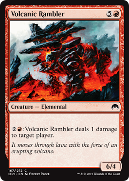 Good beater and a good mana sink for later in the game. Even if they have a enough chump blockers to keep it from smashing them, Volcanic Rambler is still gonna get some damage in there as boiling hot magma drips from its body. All you need is 2 to fill out your upper end in your deck and you’ll be fine. Definitely playable in limited.