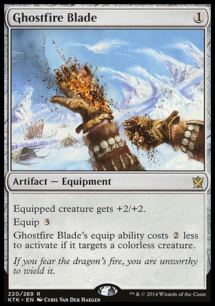 Ghostfire Blade is a 4 of in UR Thopters, which is an incredibly budget friendly, competitive deck in standard. It’s already seen a spike, but I think the more casual, budget conscious players will be picking these up enmasse in the coming weeks. UR Thopters is losing some cards, but I think it will largely be intact after rotation or find acceptable alternatives. Khans of Tarkir was opened a lot which means there are a lot of Blades out there, but they’ll get sucked up soon enough and start pushing the price up. By the time BFZ comes out in the fall I believe it will be a $3 card.
