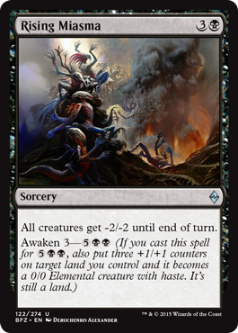 Opponent playing a ton of pesky Scion or Ally creatures? Dip them in this miasma and wait a few seconds. Look, now their board is clean! So -2/-2 for 4 mana isn’t going to be as good as a card like Drown in Sorrow in Theros limited, but this could end up being a pretty good card against both ramp and Ally strategies. The Awaken ability is nice of course and would fit well in a BWU Awaken deck, but I’m not yet convinced this is main deck playable. Depending on the deck, it could be in the sideboard or in the mainboard.