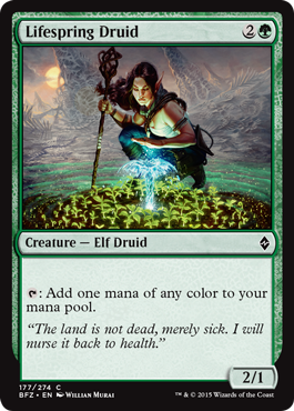 Almost finished the main colors on time but needed a little bit more time . . . oh well. Green is pretty much what you’d expect it to be: big creature and lots of ramp. There are lots of ways to ramp into bigger creatures which means its cards will be very useful in playing colorless Eldrazi as well as activating various landfall triggers with it’s land searching cards. the only thing I really feel is missing are green’s giant monsters. There are a few, but not as many as you’d expect there to be. Even the Eldrazi in green are mostly for ramp only. It seems like the designers were so focused on pushing Landfall and Eldrazi that green seemed to have what made it “green” pushed out. Let me show you what I mean.