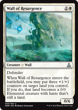 Hands down the best non-rare creature (value wise) in white in Oath is Wall of Resurgence. For 3 mana you get a huge blocker that stops 80% of the creatures in the format and get to create a 3/3 land creature. This kind of card is amazing with awaken spells like Sheer Drop and Rush of Ice, and I think that building a UW Awakening deck is a definite possibility in draft. I don’t know if I’d first pick this, but I’d probably make it my 2nd pick if it was passed to me. Get it early if you can. It won’t win you any games by itself, but it’s an amazing support card. Try blinking it for added value!