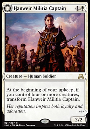 Thanks to the printing of Hanweir Garrison, I think this card just got much better. As long as burn is out of the metagame and we’re being overrun by Collected Company and token decks, the Militia Captain might not be a bad choice for some decks. I’ve been using it in my RW tokens deck and it’s been remarkably easy to flip so far in EMN standard so far. Once flipped, it becomes a very efficient beater. My guess is up to $3 from $1 in a few months, but this is probably a longshot.