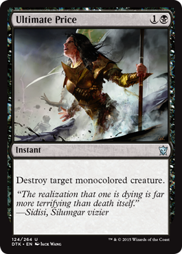 In a standard where instant speed removal (especially at 2 mana) is almost non-existant, the loss of Ultimate Price will affect black decks to some extent. Murder replaces it somewhat, but it’s at 3 mana which makes it tougher to deal with faster decks. I expect a shift away from black cards and into red one as burn spells start to gain relevance again. Ultimate Price was in a lot of black deck’s sideboards, and replacing it won’t be an easy task. These decks will have to find an answer for cards like Sylvan Advocate and Tireless Tracker or they’re not going to survive. Couple with the loss of Languish, I expect Jeskai control to make a return to the top of control colors during Kaladesh, especially with the new UW planeswalker spoiled.