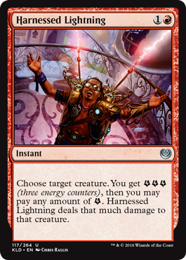 Energy decks are the real deal, especially if you can build up your reservoir quickly. I’ve seen some people get up to 10+ energy counters in a devoted energy deck, and that’s more than enough to kill anything in the format. It’s only 2 mana, an instant, and at worst it’s dealing 3 damage to a creature (which takes out a lot of targets). Yeah it sucks you can’t target a player, but if you’re playing red you’ll want a few of these in there. They are great removal spells that only get better the more synergy you have.