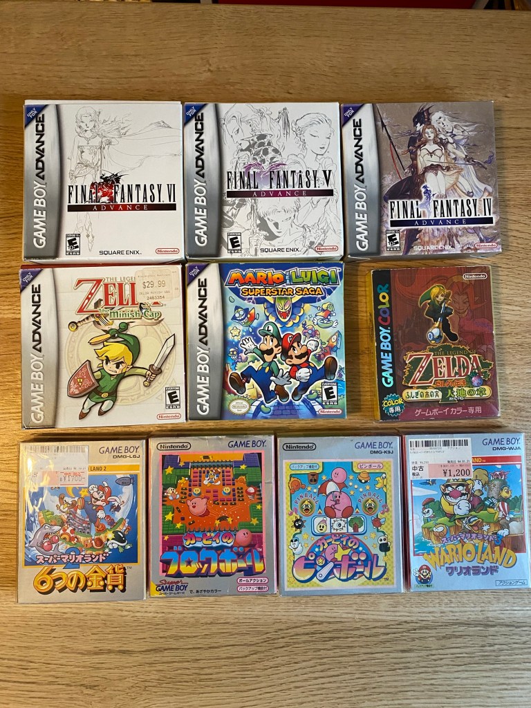 I was able to pick up a large chunk of Gameboy Advance games that I used to have prior to moving to Japan when I moved back to the USA in 2008, but sadly most if not all were without boxes. Luckily I was able to snag some boxed games towards the end of the system’s life cycle (as well as a Gameboy Micro for about $30) because the DS and DS Lite were still gaining their footing. Since getting back into game collecting I have shored up my collection with Japanese versions of games I wanted as well as replacements of ones I used to have (the Advance Wars combo cartridge is especially nice since I sold my original boxed ones!). I also started collecting Gameboy games in Japanese too, mostly focusing on games I played when I was in elementary school before I got rid of my Gameboy for a Gameboy Advance in High School/College. However, since Nintendo started to offer old games through their Switch online subscription service, I’ve found myself laying off of collecting these. The big problem with Gameboy games is the battery dying out and being unable to save your games. They can be replaced but it doesn’t seem worth it for some of them.
