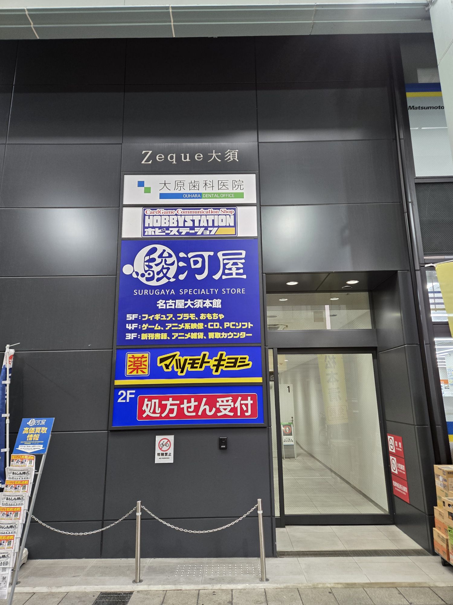 All of the stores in Nagoya are pretty easy to get to, but this one even more so. To get to the Surugaya store take exit 9 from Kamimaezu station on the Meijo line and then it’s only about a 5 minute walk there. If the map is a little vague, look for the giant cat statue in the area. If you can see it, you’re in the right place. Just look around and you should see the sign. The Meijo line can be reached by taking the yellow Higashiyama Line from Nagoya station and transferring at Sakae station to the purple Meijo line going towards Kanayama. It’s only 2 stops away. You can also take the Higashiyama line to Fushimi station and transfer to the Tsurumai line and go to Osu Kannon, but that’s a much longer walk. If you plan to do lots of other shopping and eating food in Osu it’s a good station to start from, but if you just want to buy games, Kamimaezu is much closer. And of course the best way to get to Nagoya if you’re coming from Osaka or Tokyo is to take the Nozomi bullet train, all of which stop at the city.