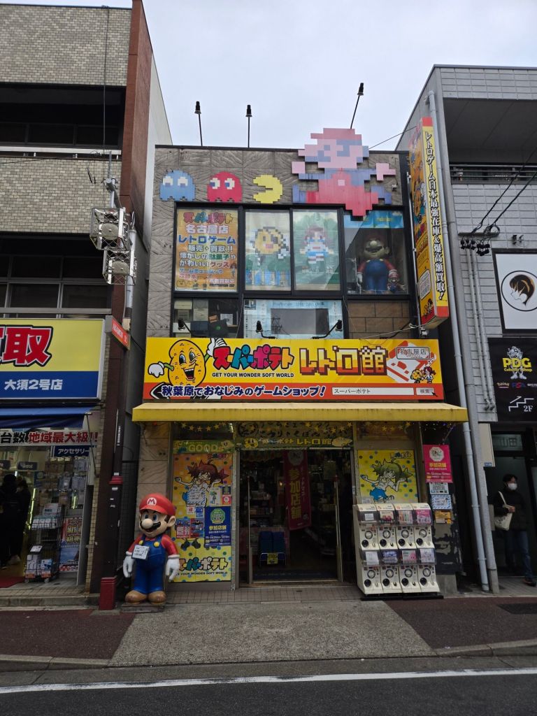 The Osu Kannon shopping area in Nagoya is a wonderful place in a great location. It can be reached by going to either Kamimaezu station on the Meijo subway line or Osu Kannon on the Tsurumai line, both of which are less than 20 minutes away from Nagoya station. Nagoya station is a major bullet train station that all types of trains stop at, so even if you take a Nozomi from Tokyo or Osaka you would arrive quickly. Osu Kannon is actually a shopping arcade, which means it’s a covered, outdoor shopping area located in the neighborhood of a city. It’s made up of 3 streets, 2 of which are covered but one that isn’t, Akamon-dori. That’s where you will find Super Potato, almost right next to Meikoya. The easiest way to reach it is to head out of either exit 8 or 9 from Kamimaezu station and then it’s about a 7 minute walk straight there.
