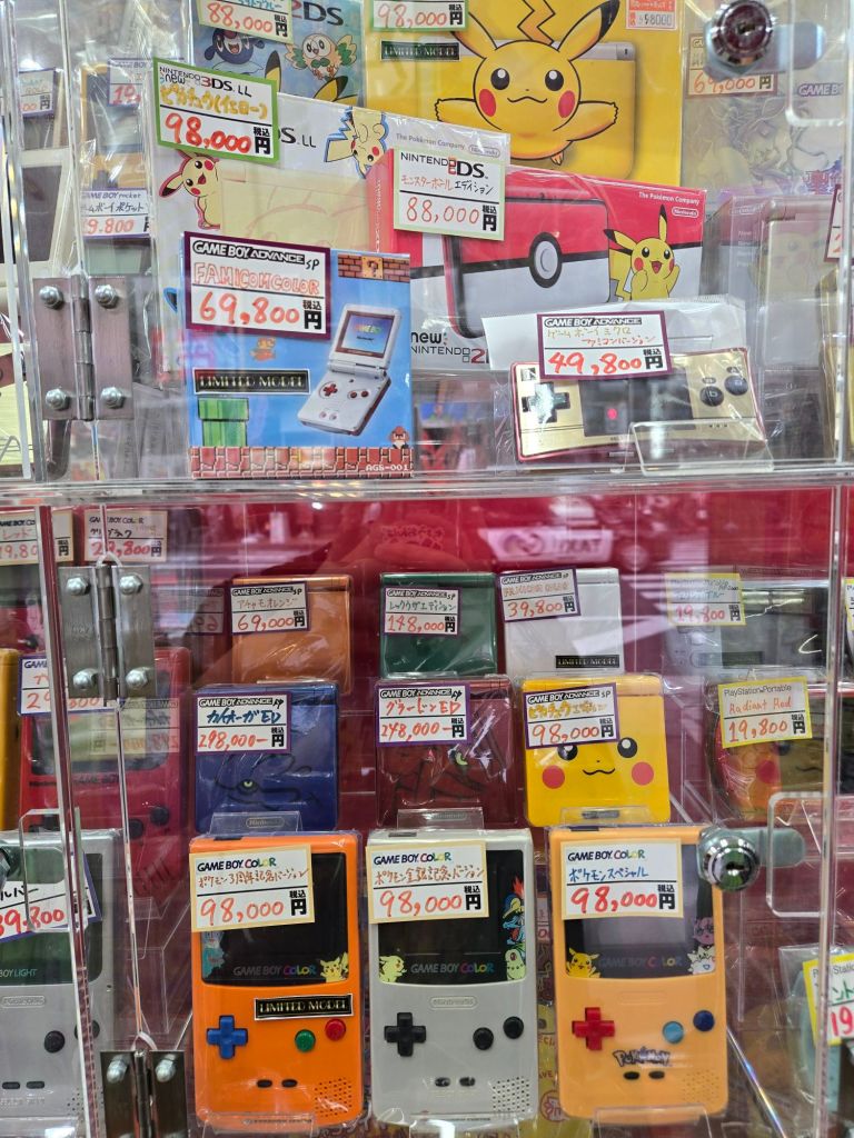 The pricing of Kaitori Max, at least at this store near Namba, is pretty high in my opinion. I’ve seen higher prices at some places, but it is closer to stores like Super Potato than it is to Hard Off or Book Offs. You won’t find good deals here, but you will find what you’re looking for, and you should find them rather easily thanks to how they have the story set up. Just to compare pricing, I was able to help a friend buy a slightly worn Pokemon Center Gameboy Color for about 27500 yen about two years back, and while most places are selling them for around 50-60,000 yen now, this place is selling them for closer to 100,000 yen. If all you want is to find a certain rare game and money is no object, this store is probably a better deal than Super Potato, but for most other people I think they’ll be priced out and are probably better off tracking down deals elsewhere.