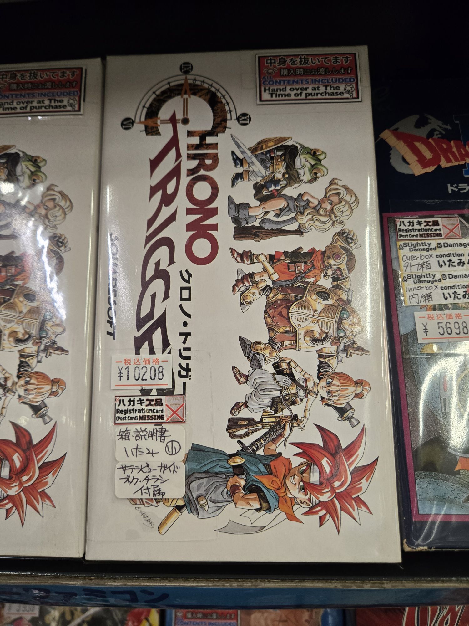 - Chrono Trigger = US price: $850 Vs. 10200 yen ($64, Super Potato), 3300 yen ($21, HO/BO)