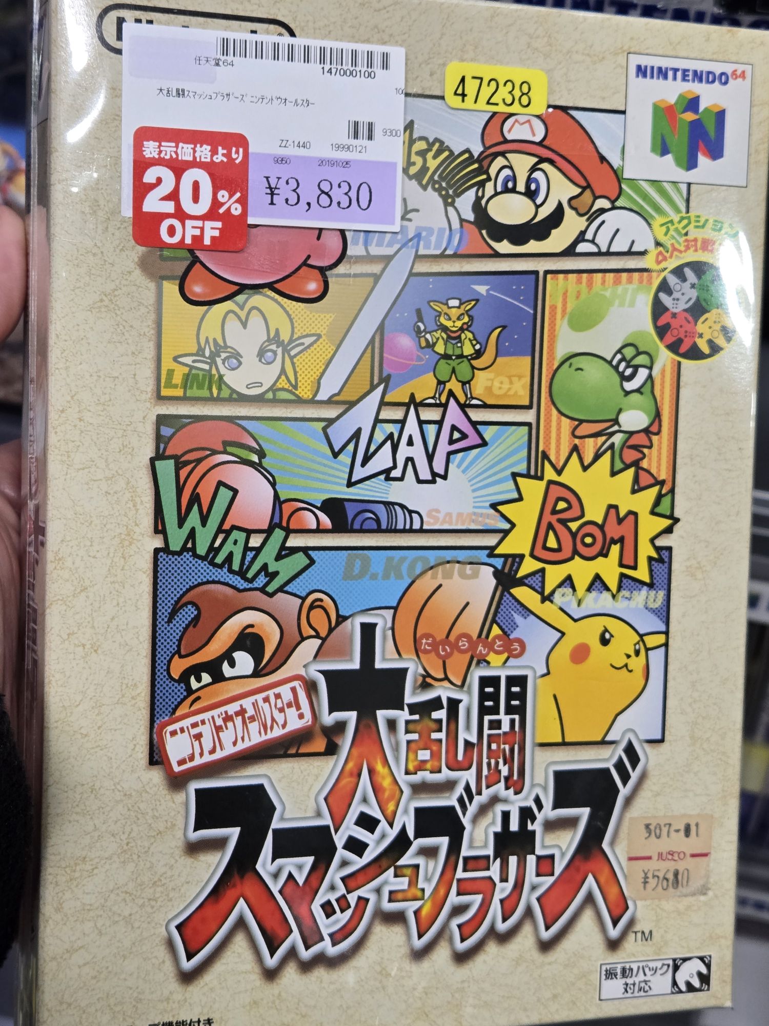 - Super Smash Bros. = US Price $180 Vs. 6600 yen ($42, Super Potato), 3830 yen ($24, Surugaya), 1650 yen ($10.50, HO/BO)