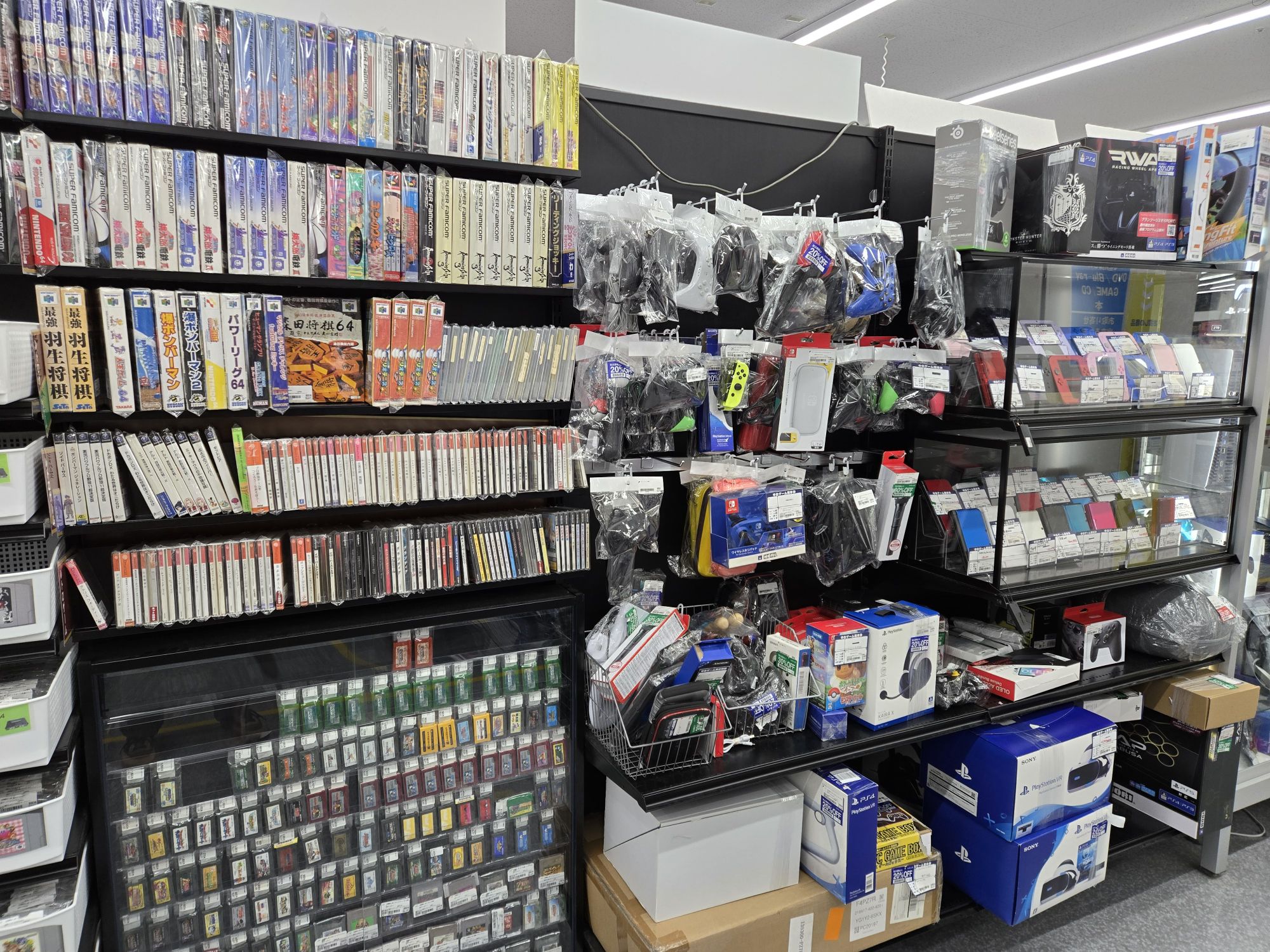 From a retro game standpoint, the Hirakatashi store has a very strong selection of Famicom, Super Famicom, PS1, PS2, DS, 3DS, and Wii software, and a decent amount of PS3 games. When I say strong, I mean they are in the top 10% of all Book Offs I’ve been to in terms of stock. Their PS1 and PS2 were especially impressive. They also had more than an average amount of Nintendo handhelds compared to other Book Offs. They was a huge amount of Nintendo Switch and PS4 games too, so if you’re looking for both new and old stuff this location has a great balance of both. You can also find many strategy guides at this store, with more uncommon and rarer ones than you’d usually see at a Book Off. This was not a great place for consoles, Sega software, or accessories however. Their showcases focused mainly on Nintendo products, so unless you’re looking for Famicom, Gameboy, or Gameboy Advanced games you won’t see much else inside of them.