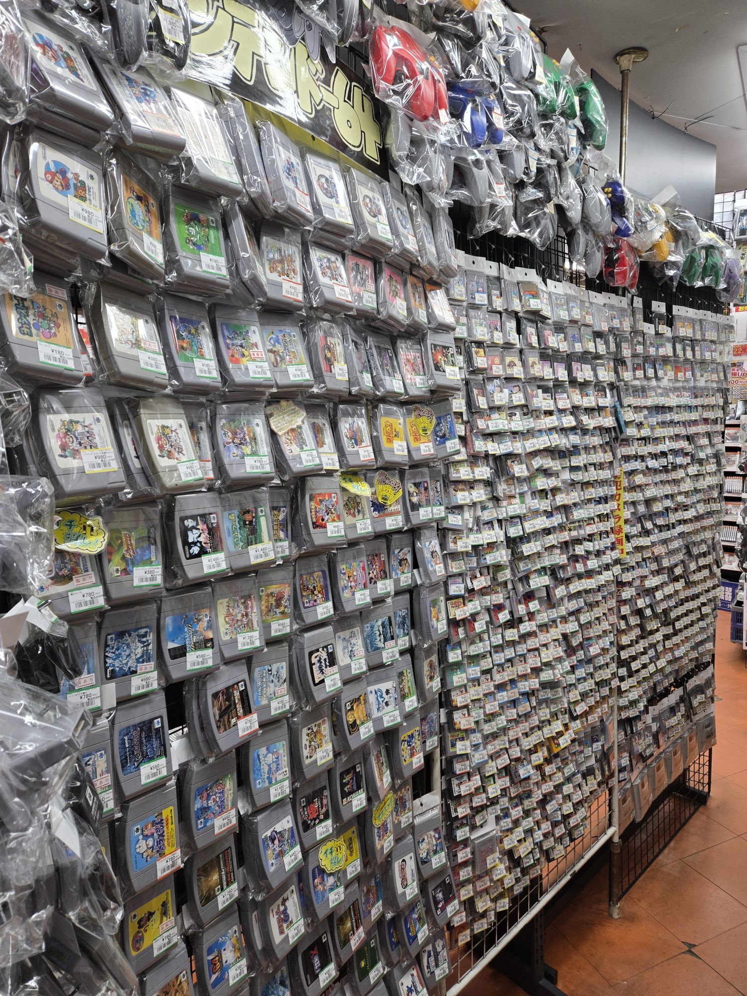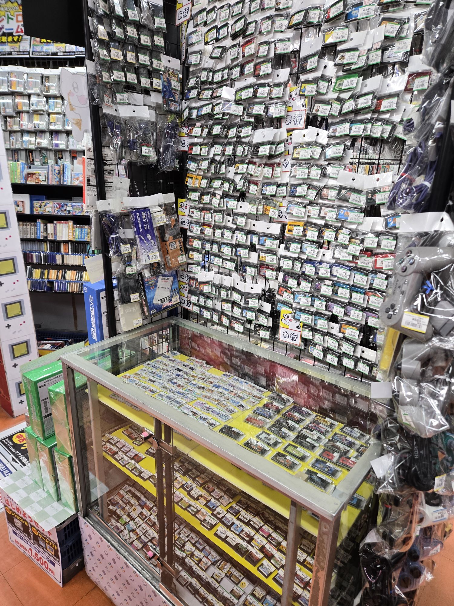 On the hardware side of things, this store had a lot of Gameboys, DS, and 3DS and while you might not be able to see them in the pictures there were a lot of consoles above and below their respective sections in the store as well. There were a lot of boxed systems (both console and handhelds), and that wasn’t the only thing that had boxed. They had some incredibly rare game accessories in boxes too at this store (pics to follow later). I found so many things I was looking for at this store I thought I had died and gone to heaven. Speaking of accessories, most store you go to will treat their accessories like garbage. They will have all of them in one box together, their cables getting twisted up and smaller items getting totally lost at the bottom of it. Not at the Ojamakan Kamishinjo store. Sure there were some accessories in baskets, but the majority of them were individually packaged and hanging from wire racks which made them accessible and easy to look through. Don’t even get me started on the depth and range of accessories either. You’ll just have to see for yourself.